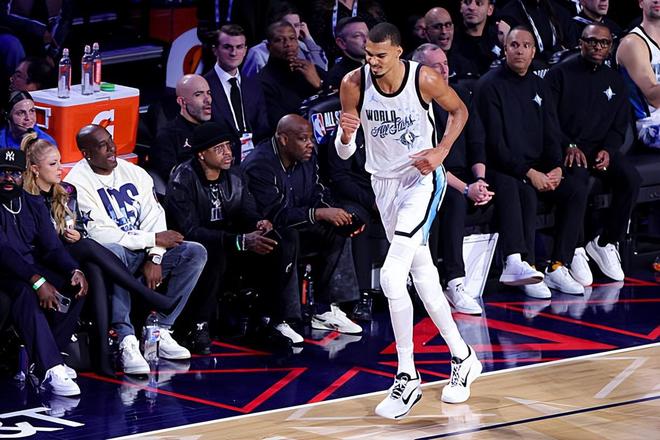 记者问道:你希望这个全新的赛制继续下去吗?另外,当你像那样在场上全力以赴时,你是如何屏蔽掉对受伤的恐惧的?文班亚马回答道:我觉得你无法真正屏蔽它。我觉得你可以去进行一些尝试,但是那可能会浪费你的精力。我认为你需要做的就是去坦然面对自己的能力。我选择了踏上赛场,这意味着我已经百分之百准备好了。至于这次是全明星赛制,是的,我很喜欢这个赛制。我不反对在未来继续沿用这个赛制,不过我也同样不反对传统的东部对阵西部。