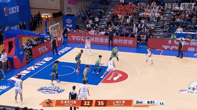 第二节大鲨鱼外援弗格出场,三投全中拿到8分,率队将分差扩大到20分以上,50比29,对手暂停。天津队外援克罗斯靠个人能力追分,不过大鲨鱼上半场还是以63比43领先了20分,洛夫顿、李添荣和弗格三人得分上双。
