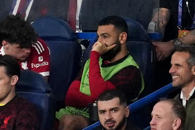 欧冠1/4决赛首回合,利物浦0-2输巴黎。萨拉赫全场坐板凳,连热身都没怎么跑。