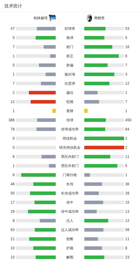 柏林赫塔0-0弗赖堡,秋色平分