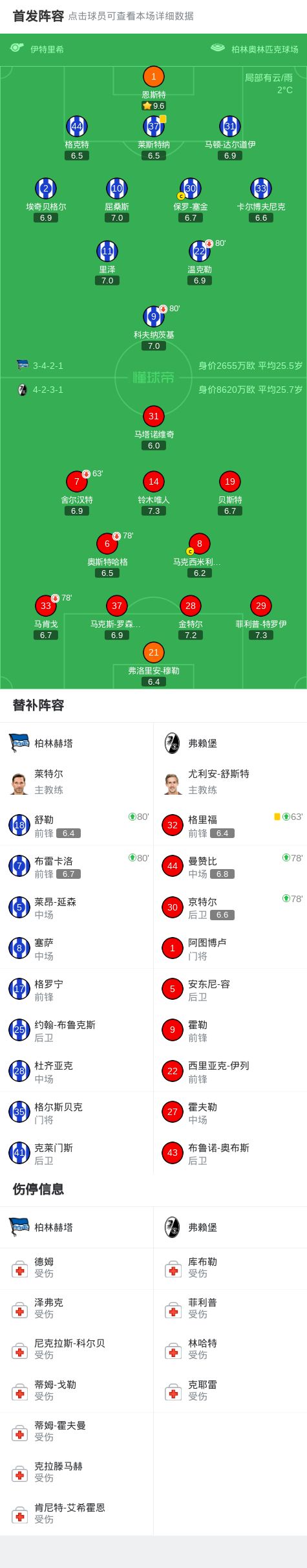 北京时间2月11日德国足协杯 1/4决赛,柏林赫塔对阵弗赖堡。最终比分柏林赫塔 0