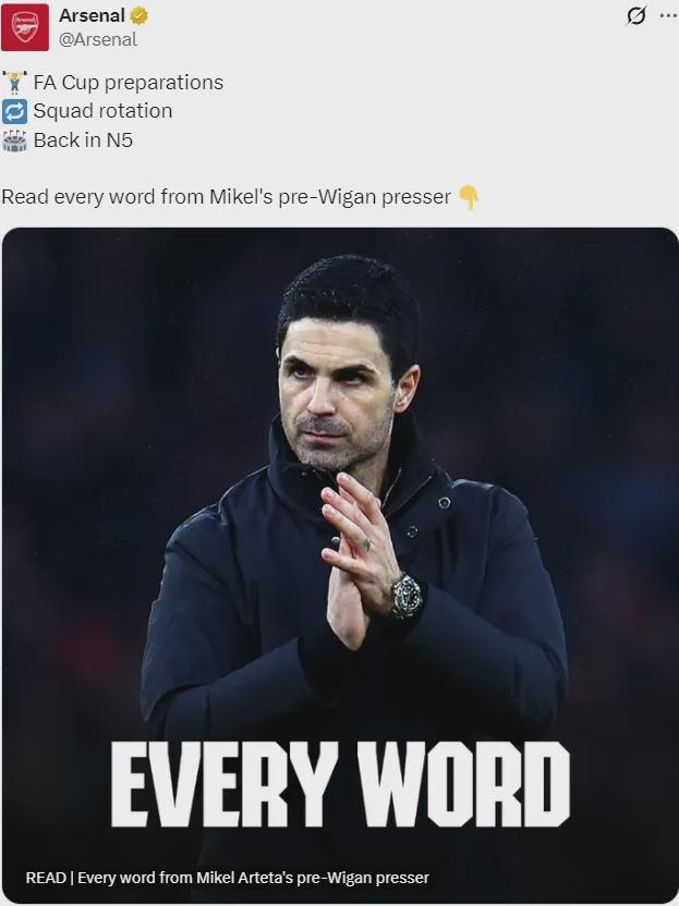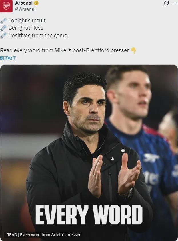 阿尔特塔出席了赛后新闻发布会,我们来看主要内容。