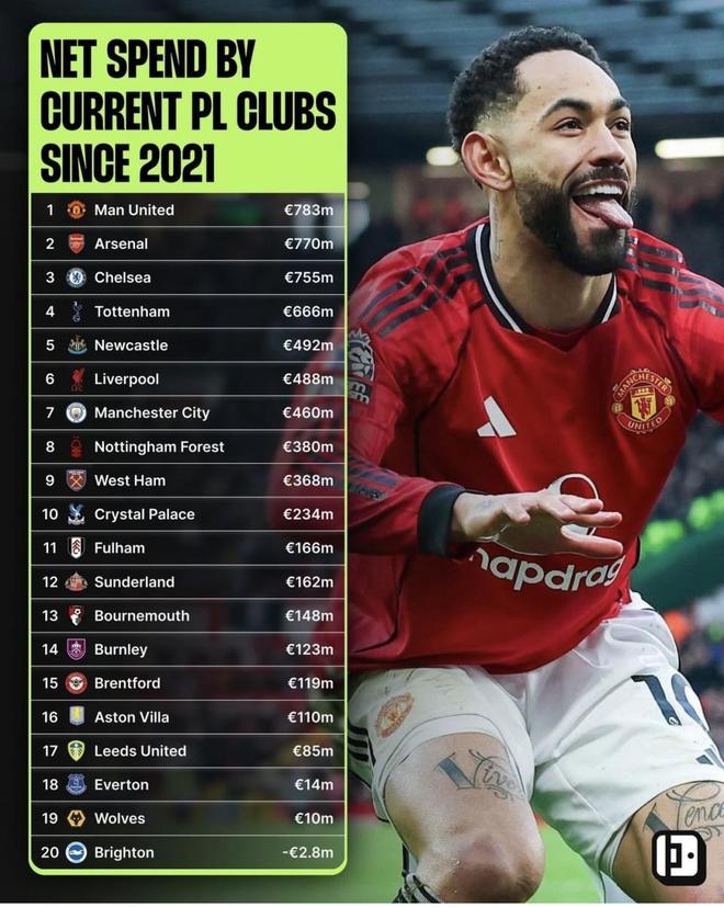 净支出4.88亿欧元,最高第1。同样属于“投入换到冠军回报”的类型。在这份数据里,它的净支出处在中上区间,但产出是最顶级的那一档。