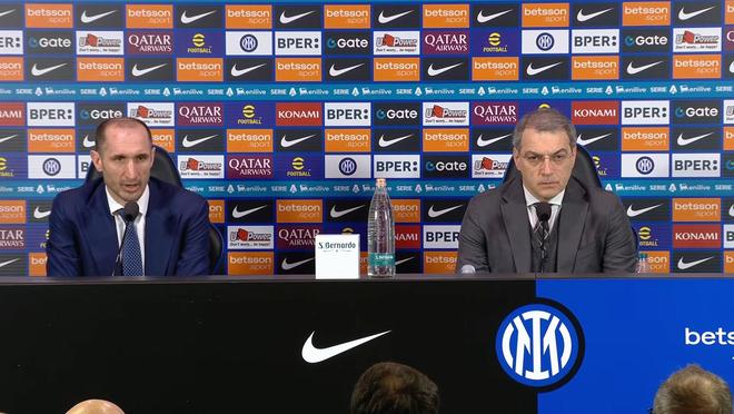 在意甲第25轮的意大利国家德比客场2-3负于国际米兰之后,尤文图斯足球战略发展总监基耶利尼和总经理达米安-科莫利一同出席了新闻发布会。