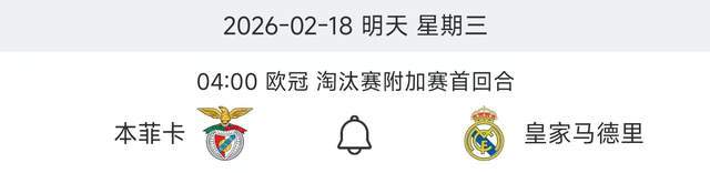 北京时间2026年2月17日消息。上赛季开始,欧洲冠军联赛进行了改制,原本的小组赛32强变成了联赛制的36强。这增加了晋级的难度和悬念,尤其是在联赛阶段后的淘汰赛!上赛季的淘汰赛阶段,皇马就遭遇了曼城,结果安切洛蒂和瓜迪奥拉的对阵上,安帅总比分6-3淘汰对手。而本赛季,皇马又在这个阶段遭遇本菲卡。这一次的对决,变成了穆里尼奥VS阿贝罗亚。