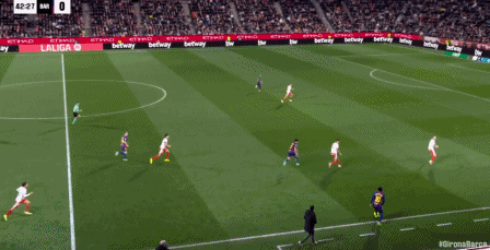 第34分钟,拉菲尼亚直塞,费尔明小角度打门踢飞