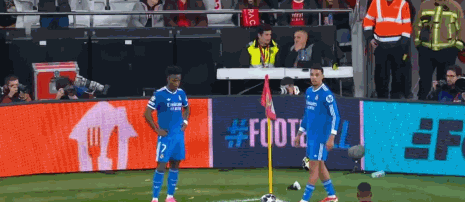 第90+12分钟,维尼修斯准备主罚角球,被球迷投掷的物体击中