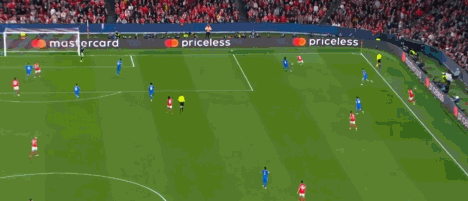 第16分钟,本菲卡连续两次射门,均被库尔图瓦化解