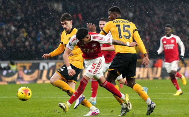 狼队这赛季是英超乃至五大联赛得分最少的球队,他们仅仅拿到9分,落后安全区18分几乎已经锁定了一个降级名额。这场比赛在厄德高伤缺下,阿尔特塔让萨卡顶替了埃泽前腰位置与马杜埃凯、马丁内利、哲凯赖什搭档锋线;赖斯、苏比门迪双后腰;廷贝尔、萨利巴、加布里埃尔、因卡皮耶联袂防线,拉亚把守球门。