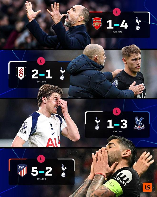 此役客场对阵马德里竞技,热刺在开场25分钟不到便0-4落后,最终以2-5的比分不敌对手。