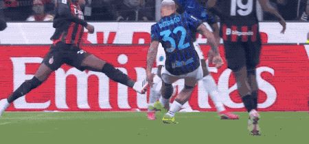上半场的补时阶段,国米获得角球,巴雷拉禁区外的远射明显偏出。半场结束,米兰1-0暂时领先。