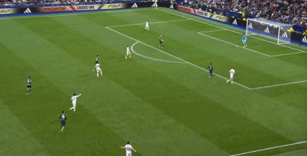 所以在下半场,皇马的表现依然稳健,还是通过人数足够的防守来构筑基础,在此之上进行次数有限,但威胁不小的反击,效果依然不错: