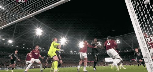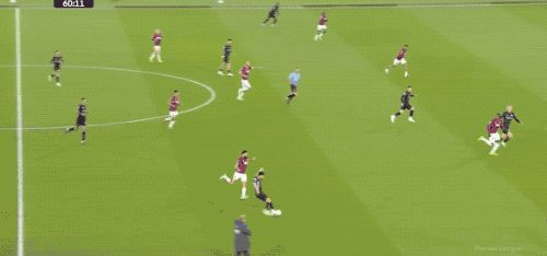 第27分钟,努里强行传中,西汉姆联两名防守球员起跳晃点了哈兰德,哈兰德的头球没能顶正部位。