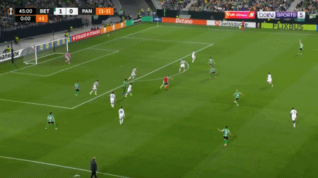 北京时间3月20日欧足联欧洲联赛 1/8决赛次回合,皇家贝蒂斯对阵帕纳辛奈科斯。皇家贝蒂斯鲁伊瓦尔破门,索菲扬-阿姆拉巴特破门。半场战罢,场上比分皇家贝蒂斯 2-0 帕纳辛奈科斯。两回合总比分皇家贝蒂斯2-1帕纳辛奈科斯。