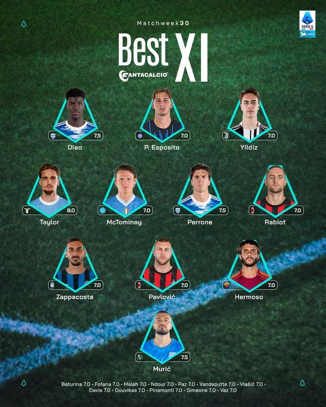 北京时间3月25日,意甲官方公布了联赛第30轮的最佳阵容,皮奥-埃斯波西托、凯南-伊尔迪兹、麦克托米奈以及拉比奥领衔。
