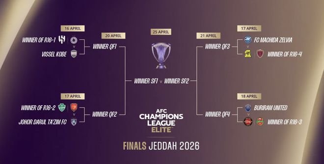 根据赛程,亚冠精英联赛(西亚区)1/8决赛将于当地时间4月13日和14日在沙特进行: