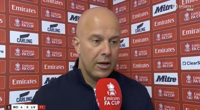 在足总杯1/4决赛客场0-4不敌曼城后,利物浦主帅斯洛特接受了TNT体育的采访。