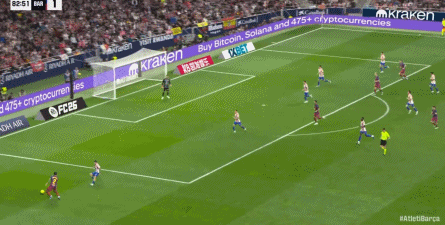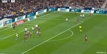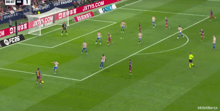 第35分钟,巴萨前场精彩配合,亚马尔巧射击中立柱