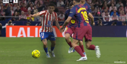 第32分钟,格列兹曼铲倒佩德里,被主裁判口头警告