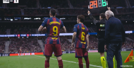 第77分钟,巴萨换人调整,莱万、加维替补登场